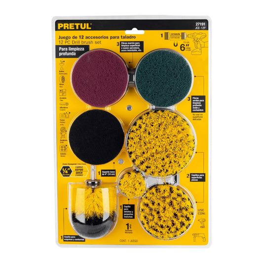 Juego 12 accesorios de limpieza y asentado p/taladro, Pretul - CÓDIGO: 27191