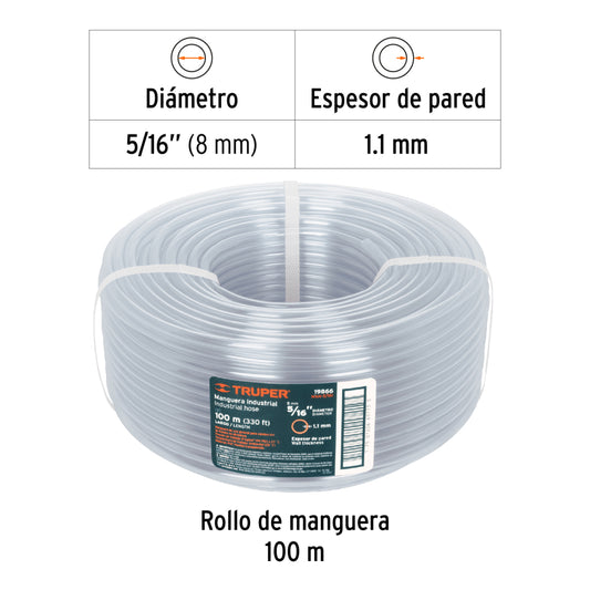 Metro de manguera 5/16" industrial en rollo de 100 m, Truper - CÓDIGO: 19866