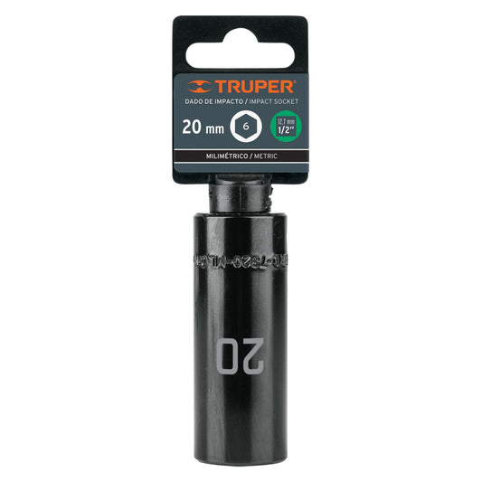 Dado largo cuadro 1/2" de impacto 6 puntas de 20 mm, Truper - Código: 12432