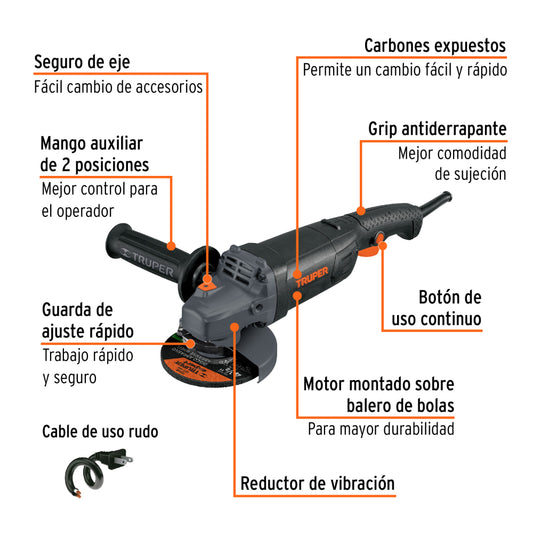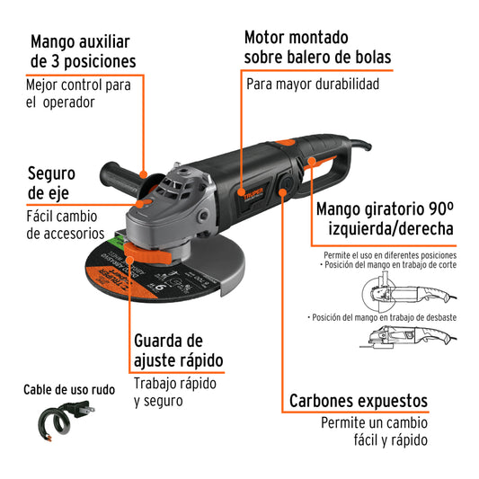 Esmeriladora angular 7", profesional, 220 V, 2100W, TRUPER - Código: 11022