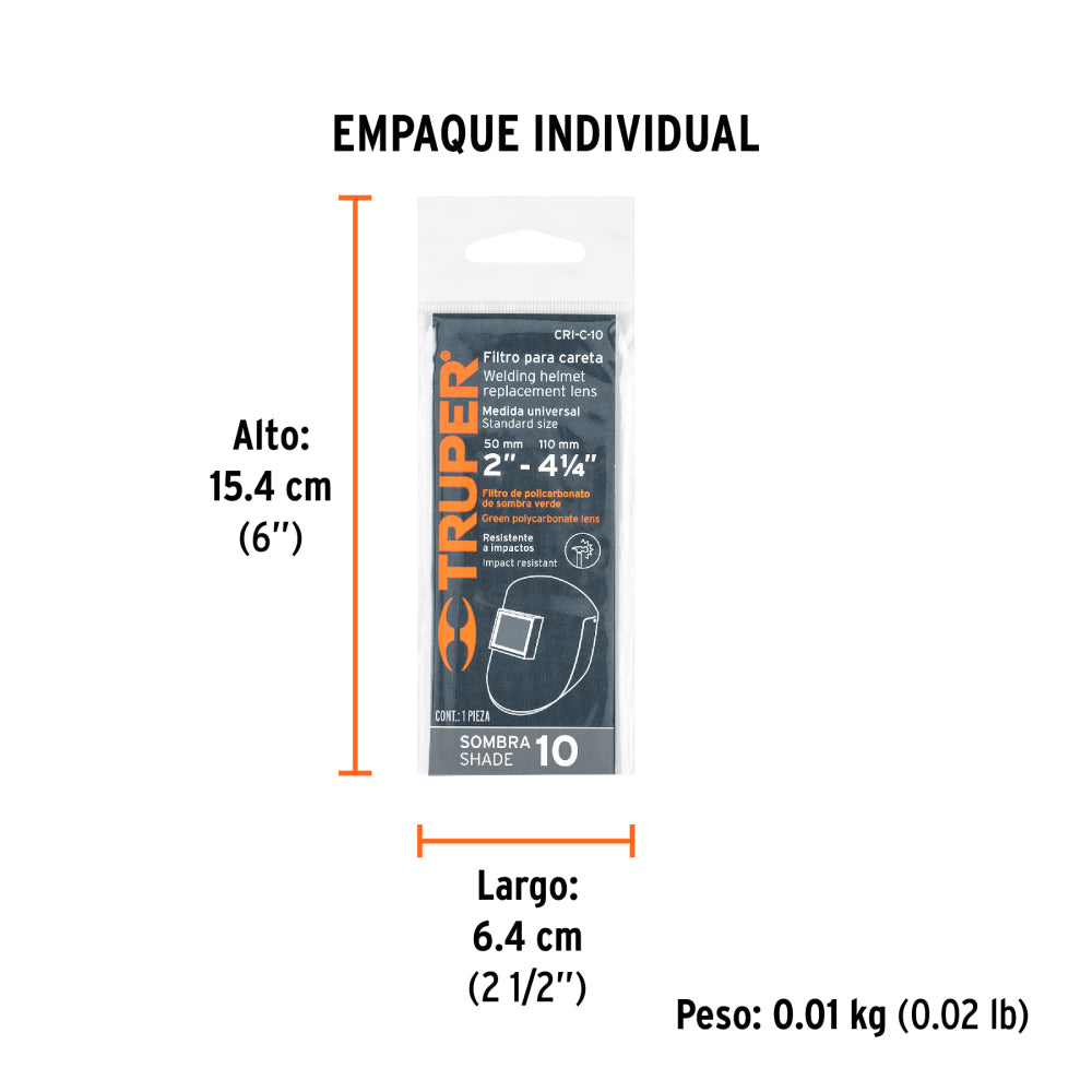 Lente para caretas de soldar Caso-300, sombra 10 Truper - Código: 14274